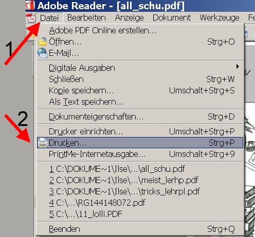 Menue-Leiste und dann auf "Drucken". Die Seiten werden ausgedruckt. |